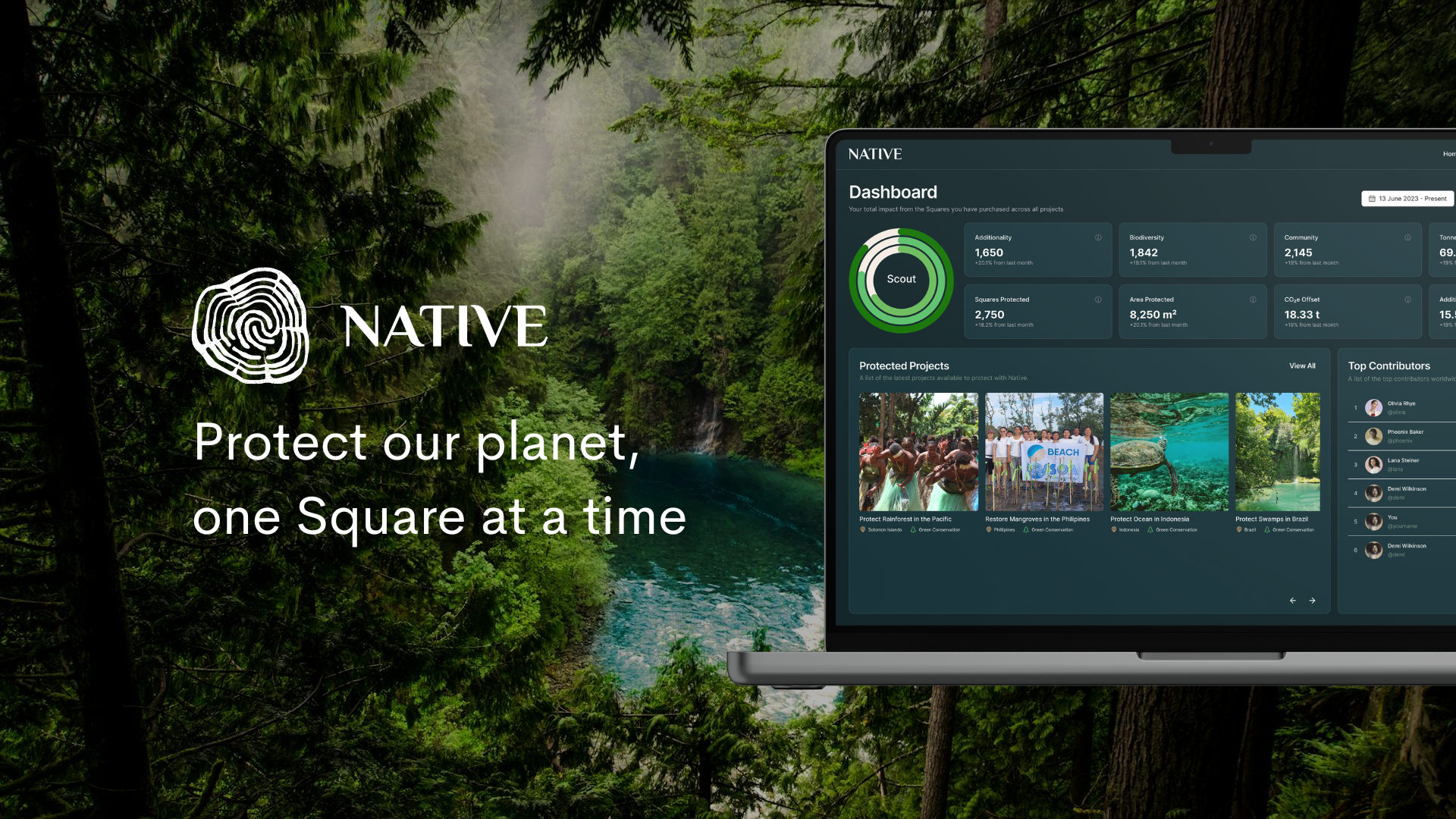 • Native helps individuals and companies protect our planet, one Square at a time. Native brings nature markets to life by tying individuals and businesses impact to real, tangible, precious places which can be seen on a map.